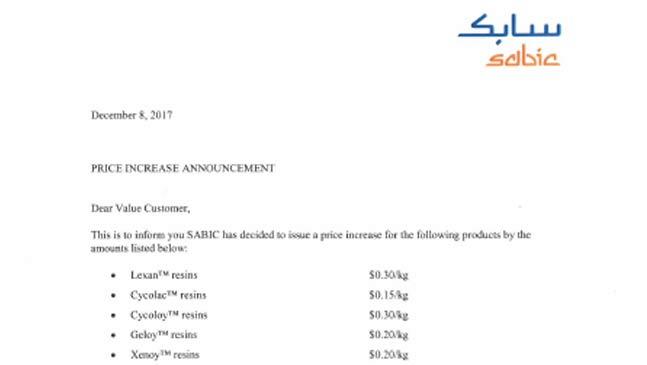鉅衍塑化小編通知大家, SABIC官方 漲價函如圖所示: 鉅衍塑化有限公司是一家銷售SABIC(即沙伯基礎創新塑料公司)工程塑...