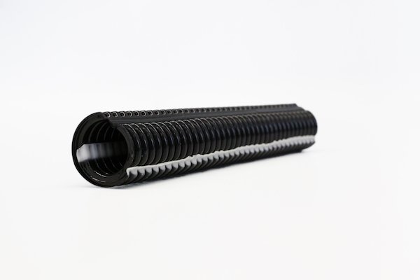 ????????柔性電纜管理系統(tǒng)的新型Polyflex波紋管,特別是用于車輛制造中,標志著Schlemmer Group對TPE組件的要求已經(jīng)提高。為了避免產(chǎn)生尖銳的邊緣,并使狹縫波紋管安裝速度加快,產(chǎn)品開發(fā)人員的設計旨在通過共擠出將PA和TPE結(jié)合在一起。