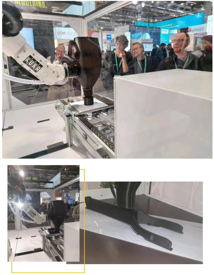 ????????據(jù)悉,伊之密SpaceA機(jī)器人柔性增材制造系統(tǒng)制品可適用于汽車、家電、建筑等領(lǐng)域,提供經(jīng)濟(jì)高效的生產(chǎn)方法并實(shí)現(xiàn)非常規(guī)組件的高質(zhì)量自動(dòng)化生產(chǎn)。而通過將原料擠出的形式,SpaceA可以直接使用含纖維填充的熱塑性顆粒料進(jìn)行生產(chǎn)。