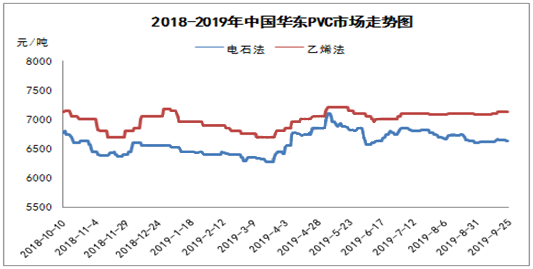 ????????第四季度是PVC傳統(tǒng)意義上的消費(fèi)淡季,整體交易活躍度與交易價格均呈現(xiàn)緩慢下滑或回落的態(tài)勢。以華東SG-5為例,去年同期價格自6800元/噸以上的水平緩慢下滑至6380元/噸,年底受期貨走高影響,市場價格小幅反彈。2019年四季度國內(nèi)PVC市場仍然面臨著面臨著環(huán)保、采暖季限產(chǎn)等問題,預(yù)計(jì)將延續(xù)偏弱震蕩的行情。區(qū)域性價差仍不大,上調(diào)阻力明顯,微調(diào)下行仍相對頻繁。