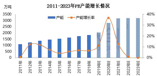 ????????2019年國內聚烯烴市場壓力主要來自于供應端的增加,裝置擴能供應增加的聲音始終貫穿全年,市場銷售壓力加劇,價格承壓下跌。從國內PE產能增長來看,2012年國內PE產能增速在12.4%。2019-2020年將迎來國內PE產能的另一輪增長高峰。盡管2019年多套計劃投產裝置投產計劃延期,但行業擴能增速仍將在2020年超過35%創歷史新高。