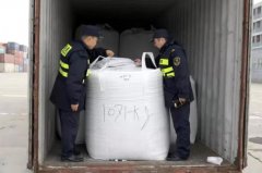 近日,上海海關兩名現場作業人員打開一個封存的集裝箱,一股刺鼻的嗆人氣味撲面涌出,箱子里塞滿了編織袋包裝物...