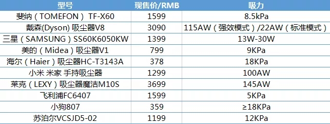 十大品牌不同型號吸塵器對應(yīng)售價及吸力