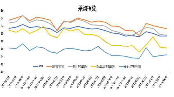 ????????值得注意的是,隨著中美貿(mào)易戰(zhàn)的不斷升級,市場信心指數(shù)嚴重受損。PMI指數(shù)已經(jīng)連續(xù)兩個月在榮枯分界線以下,這表明當(dāng)前經(jīng)濟下行壓力不容小覷。新訂單指數(shù)連續(xù)兩個月在下降,一直是在榮枯分界線以下,這也說明企業(yè)整體訂單的情況不好,尤其新出口訂單是出現(xiàn)明顯下滑,上半年出口訂單受趕出口影響出現(xiàn)反彈,但下半年出口會出現(xiàn)回落。外部環(huán)境導(dǎo)致的外需下滑,以及它給整個經(jīng)濟增長帶來的壓力,是不容低估的。
