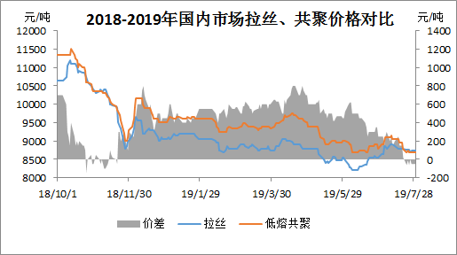 ????????拉絲價(jià)格走高除受期貨拉漲以外,粉料價(jià)格高位仍在支撐粒料價(jià)格高位不下的原因,裝置排產(chǎn)來看,部分停車裝置再現(xiàn)利好,新投產(chǎn)裝置量產(chǎn)偏少,拉絲體量較大,且多為快消品,剛需存在。