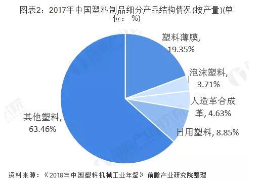 從塑料制品行業產量細分結構來看,按照《2018年中國塑料機械工業年鑒》數據顯示,2017年,塑料制品行業中塑料薄膜產量最多,占比達19.35%,其中農業薄膜的產量占比達2.63%;其次是日用塑料,占比達8.85%;此外人造革合成革、泡沫塑料產量分別占比4.63%、3.71%。