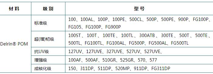 按用途分為:普通級pom、增強級pom、耐沖擊級pom、耐候級pom、耐摩擦級pom、導電級pom、抗靜電級pom及lof級pom等。
